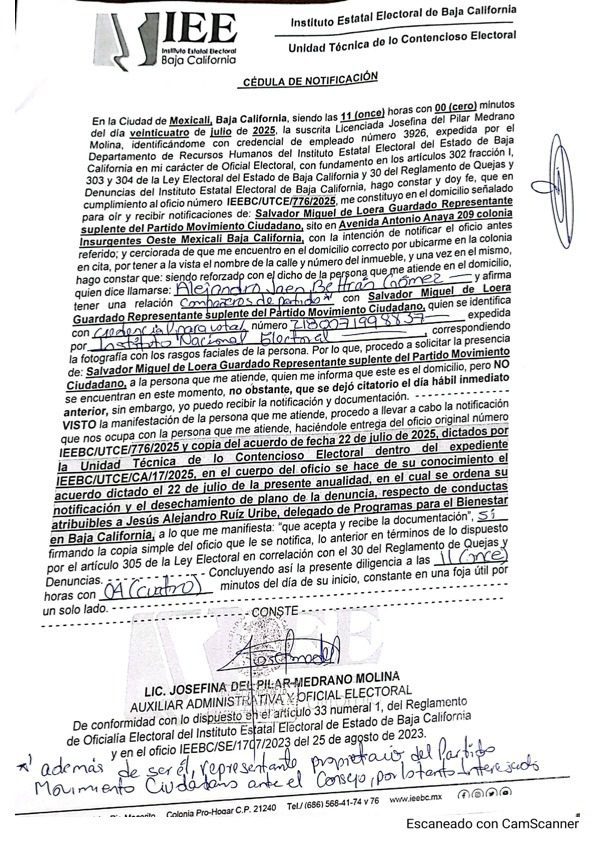 El delegado de Programas para el Bienestar en Baja California, Jesús Alejandro Ruiz Uribe, fue exonerado por el Instituto Estatal Electoral de Baja California (IEEBC), al desechar una denuncia presentada por el partido Movimiento Ciudadano que lo acusaba de realizar promoción personalizada mediante espectaculares de la Fundación Ruiz Uribe en Mexicali y Tijuana.